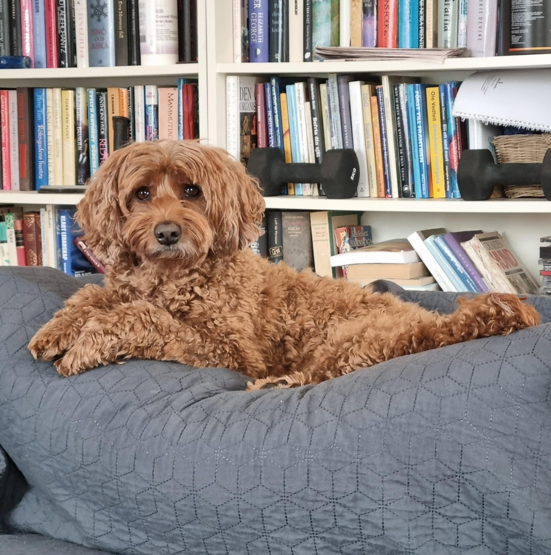Han hänger med sin familj både på restauranger i innerstan och ute i motionsspåret när husse tränar löpning.